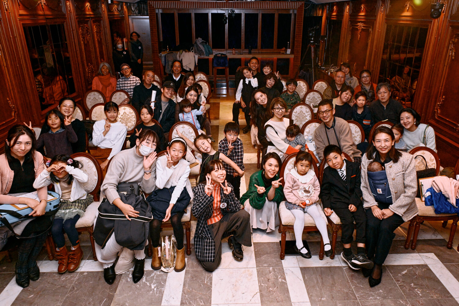 お馴染みのクリスマスソングでリラックスしてきた頃、あず美さんの思いがけない提案で、子どもたちとのセッションタイムが始まりました。少し緊張した面持ちながらも、積極的にステージに上がった子どもたち。ピアノの鍵盤にそっと指を置き、音が響くと同時に表情がほころび、自信に満ちた笑顔が広がっていきます。なんと、持参したヴァイオリンでセッションに参加した子も。子どもたちの歌声やピアノ、ヴァイオリンの音が、あず美さんの歌声と楽しく重なると、観客から拍手が湧き上がり、会場全体が幸せな空気に包まれました。子どもたちは音楽の中で自由に表現する喜びを感じ、一緒に作り上げる特別なひとときを共有していました。