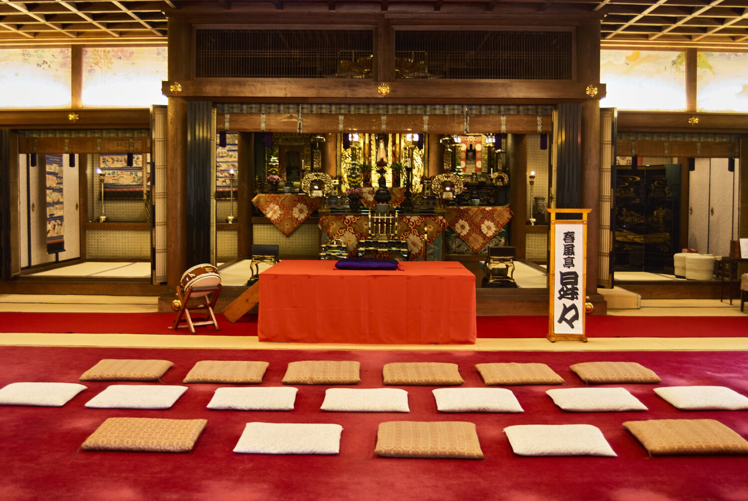 光明寺の本堂に足を踏み入れると、香の薫りと、揺れる灯明の光。