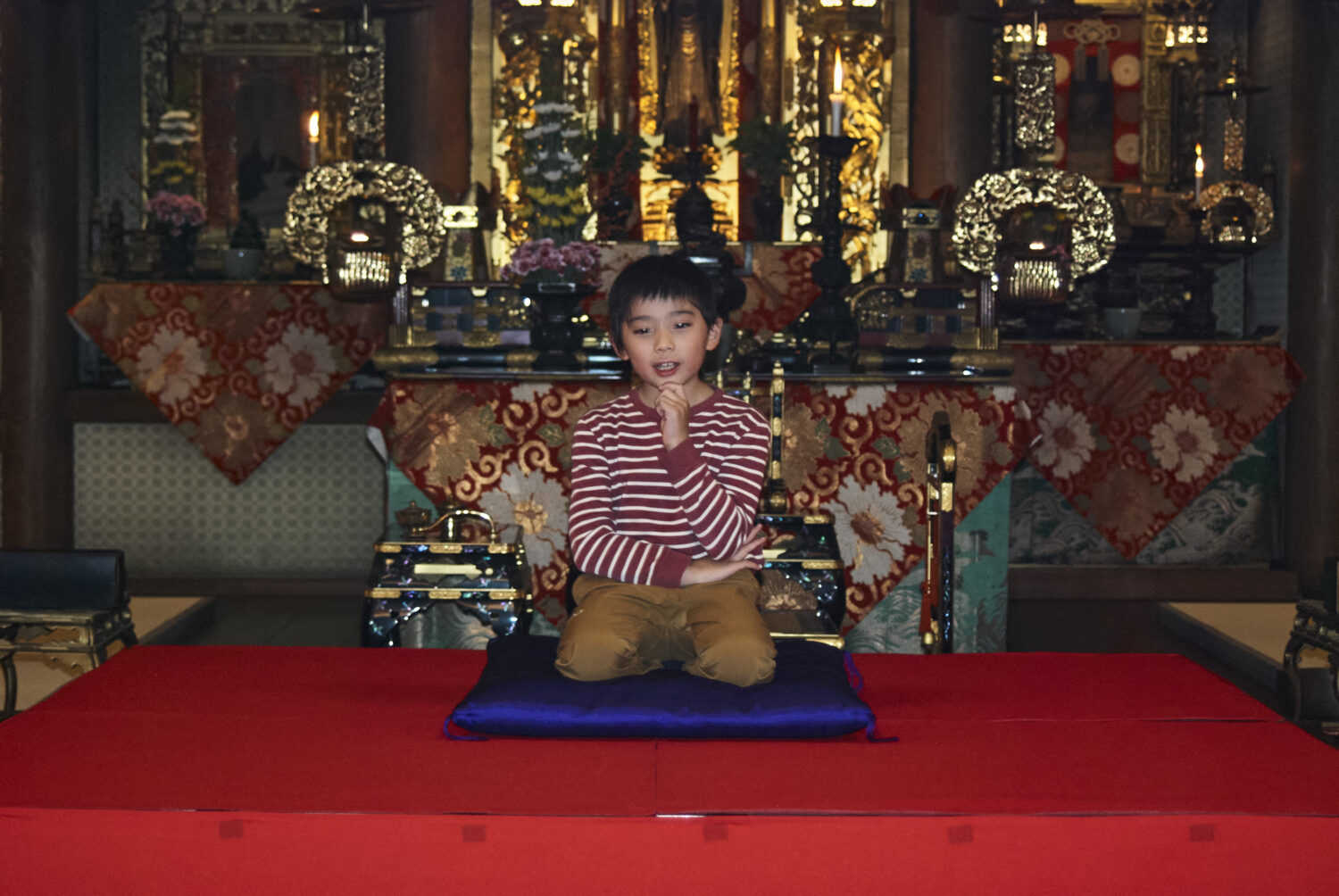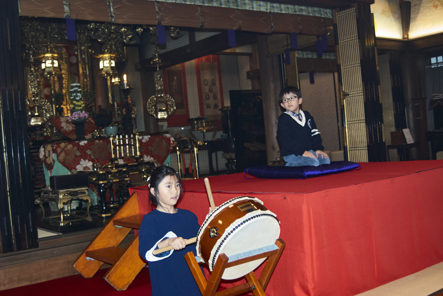 太鼓の音が、高座へ向かう子どもの背中をそっと押す。